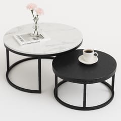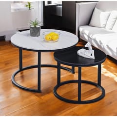 Idealny zestaw — w skład wchodzą 2 stoliki o różnych rozmiarach, które można ustawiać razem lub osobno. Świetnie sprawdzą się jako stolik kawowy + stolik pomocniczy.