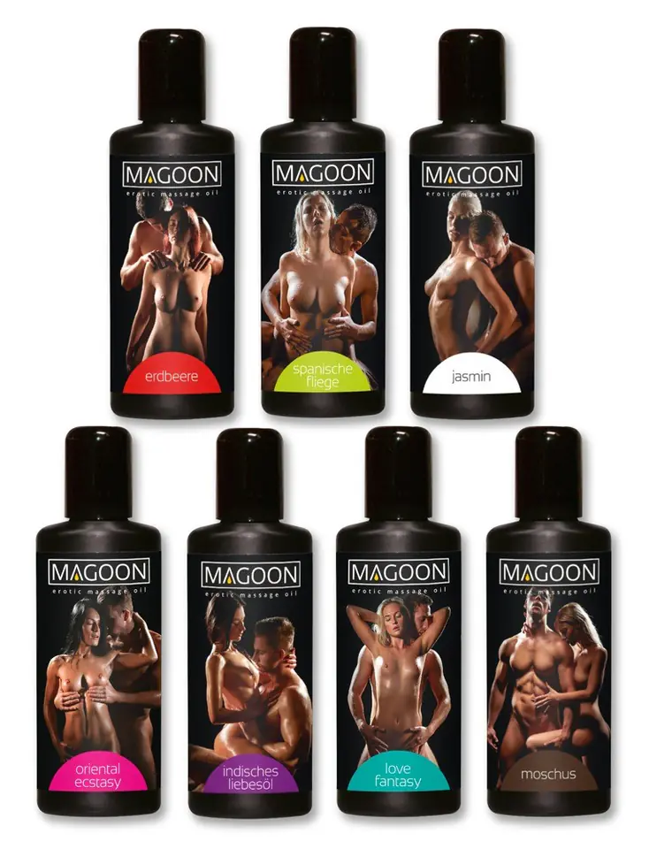 6 najlepiej sprzedających się olejków do masażu marki Magoon:- Wanilia- Jaśmin- Indyjski olejek miłosny- Love Fantasy- Orientalna ekstaza- Hiszpańska muchaZawartość zestawu 6 x 100ml