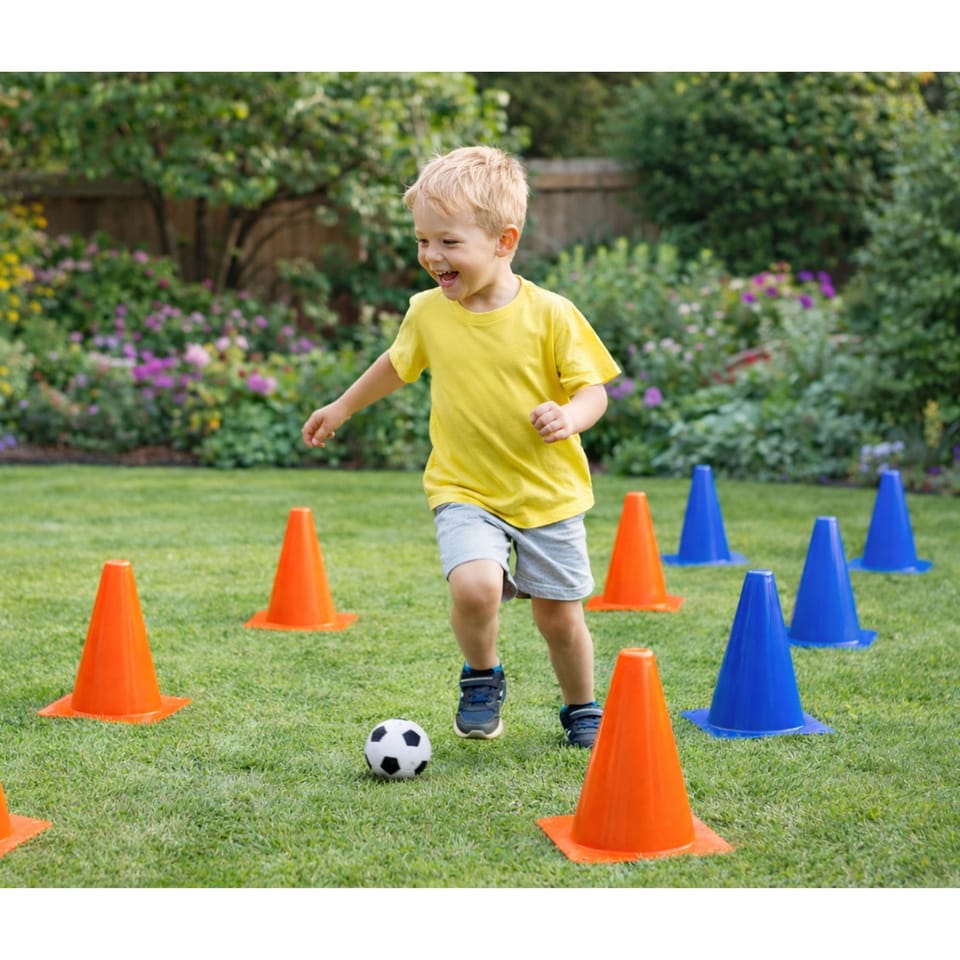 Zestaw pachołków treningowych z piłką to doskonała propozycja do aktywnej zabawy na świeżym powietrzu oraz w domu. Kolorowe elementy w intensywnych barwach pomarańczowej i niebieskiej zachęcają do ruchu i ułatwiają organizację różnorodnych ćwiczeń. Komplet sprawdzi się podczas zabaw ruchowych, treningów koordynacyjnych, mini torów przeszkód oraz pierwszych ćwiczeń piłkarskich.