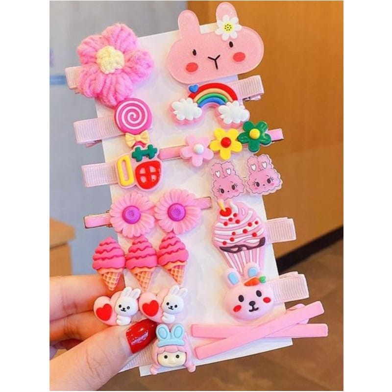 Zestaw pakiet 14w1 spinek wsuwek do włosów, kwiatki, lato róż SP456