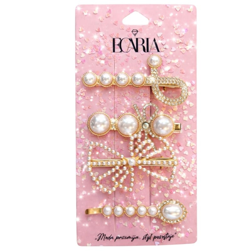 Zestaw spinek do włosów - 4sztuk Wymiary:Wysokość spinki: od 1cm do4,3 cmSzerokość spinki : od 6cm do 7cmGłębokość: do 1,5cm Wymiary kartonika:15 cm x 7,5 cm x 1,5 cm Waga produktu:21g netto / 28g brutto metal nieszlachetny - nie zawiera niklu i chromuUnikać kontaktu z wodą
