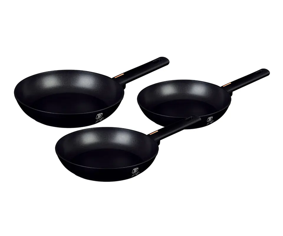 Garnki, patelnie i akcesoria z serii MONACO TITAN COLLECTION firmy BERLINGER HAUS wykonane są z wysokiej klasy aluminium pokrytego wewnątrz powłoką tytanową o bardzo wysokim współczynniku twardości. Powłoka zewnętrzna w kolorze czarnym matowym. Te atrakcyjne i modne naczynia wyposażone są standardowo w uchwyty typu SOFT TOUCH (silikon handle). Przystosowane do wszystkich rodzajów kuchenek: gazowa, elektryczna, ceramiczna, halogenowa, indukcyjna. System TURBO INDUCTION (bardzo szybko nagrzewają się) pozwala zaoszczędzić nawet 35% energii.