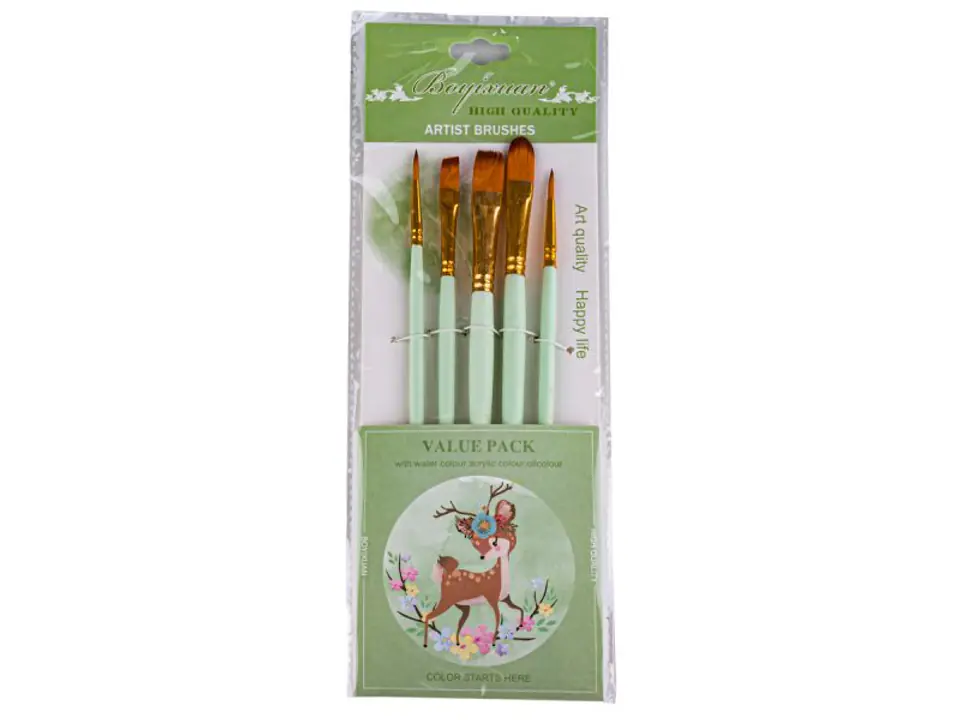 Zestaw zawiera 5 pędzli artystycznych przeznaczonych do różnego rodzaju farb. Idealnie nadają się zarówno dla profesjonalistów jak i osób, które dopiero zaczynają przygodę z malarstwem.
