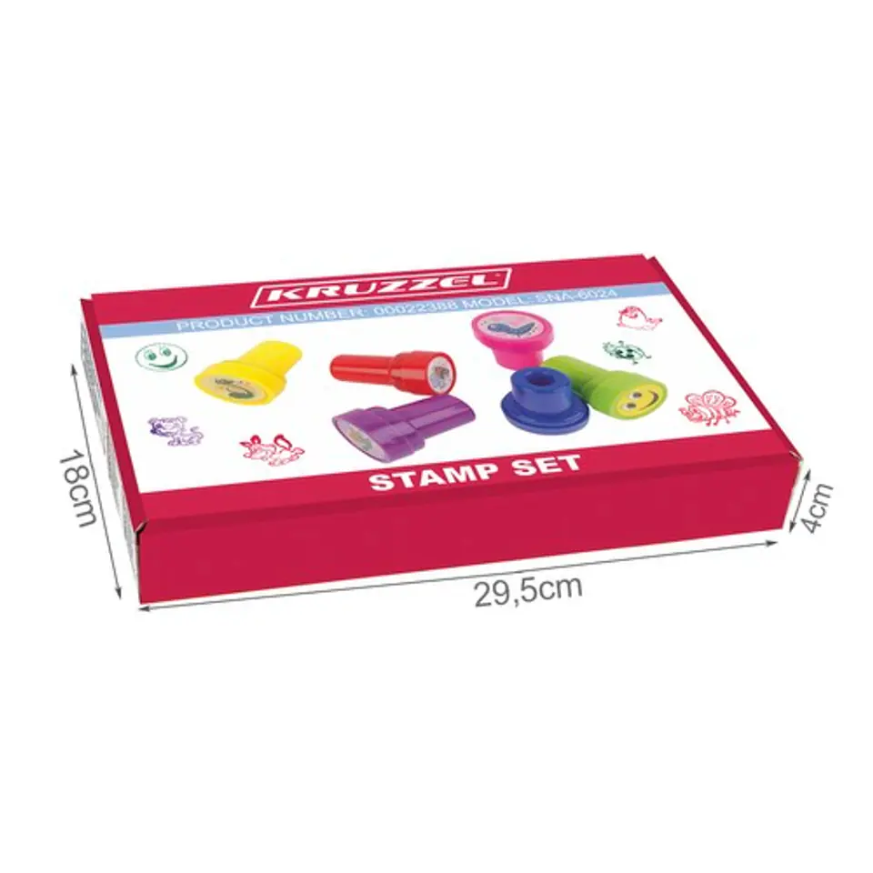 Zestaw 60 stempelków to dokonała zabawa dla fanów plastyki i nie tylko! Wystarczy moment, a wzorki znajdujące się na pieczątce magicznie odbiją się na kartce.