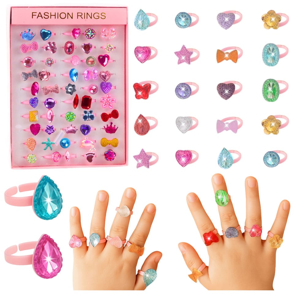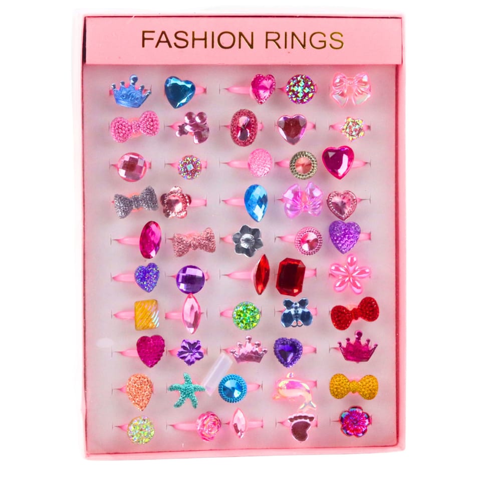 ZESTAW 50 BŁYSZCZĄCYCH PIERŚCIONKÓW DLA DZIECI