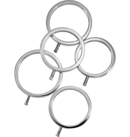 Zestaw 5 metalowych pierścieni do eletrostymulacji. Połączenie poprzez wtyczkę 2mm typu PIN.