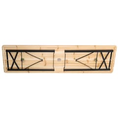 - Wymiar ok: 170 x 23 x 46 cm(dł. x szer. x wys.)Materiał: siedzisko - impregnowane drewno, stelaż – żelazoKolor: czarny, naturalne drewnoWaga 1 ławy ok.: 7,1 kgMaksymalne obciążenie: 300 kg