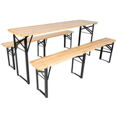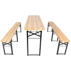 Cały zestaw czyli stół i 2 ławy został zaprojektowany tak, aby po złożeniu zajmował niewiele miejsca, dzięki czemu jest łatwy w przechowywaniu i transporcie. Dodatkowo specjalne blokady w stelażach zadbają o Twoje bezpieczeństwo podczas użytkowania.