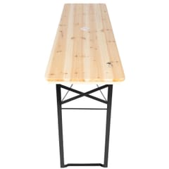 - Wymiary ok.: 170 x 46 x 75 cm (dł. x szer. x wys.)Nie ma możliwości regulacji wysokościMateriały: stelaż – żelazo, blat - drewno impregnowaneGrubość blatów: stół - 2 cm, lawy – 2,5 cmKolor: naturalne drewno, czarnyWaga netto ok.: 9,3 kgMaksymalne obciążenie: 100 kg