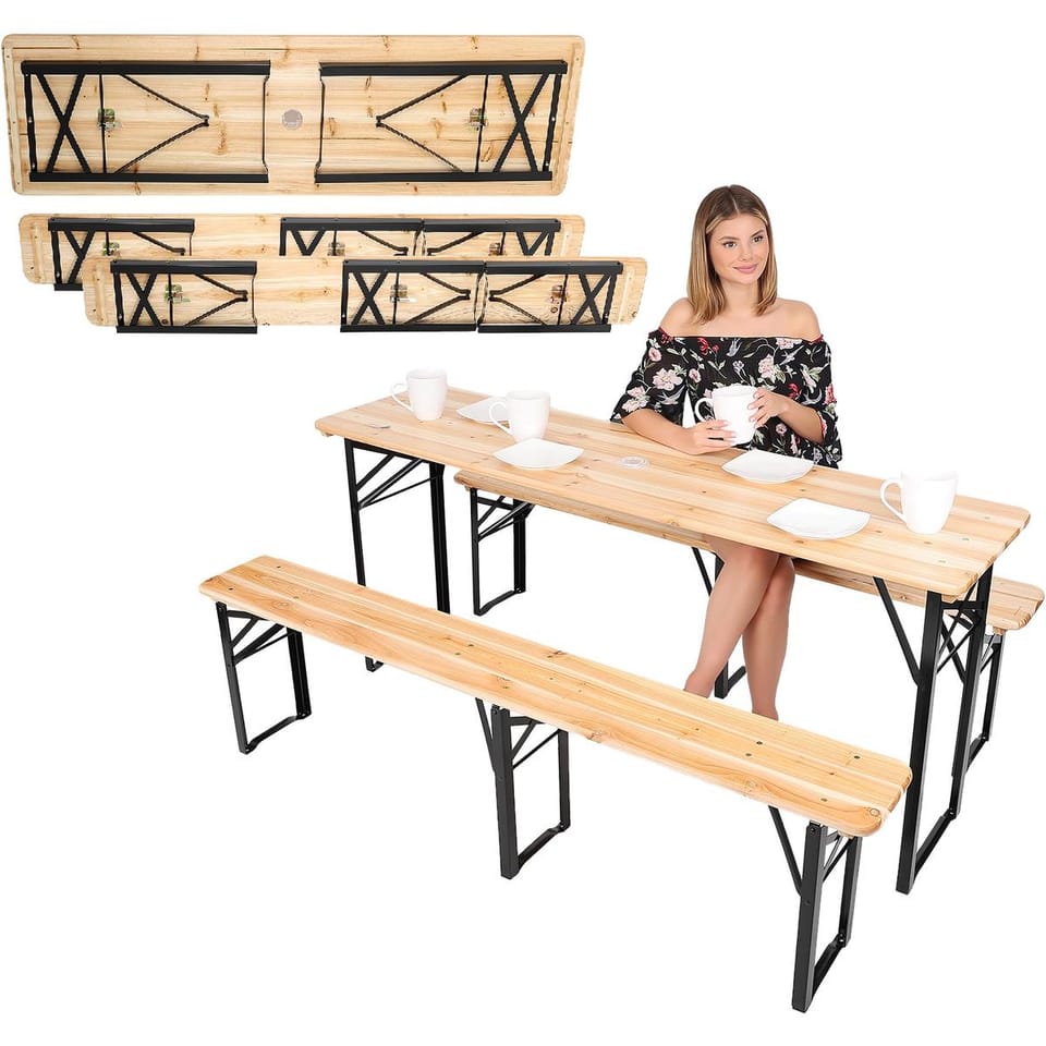 Odkryj radość spędzania czasu na świeżym powietrzu wybierz nasz ZESTAW PIKNIKOWY BAROWY DREWNIANY STÓŁ I 2 ŁAWKI postaw na naturalną jakość i elegancję!