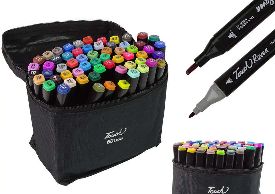 Zestaw 60 markerów zapakowany jest w estetyczne, ułatwiające przechowywanie etui sprawia, że nasza oferta jest idealna jako prezent !