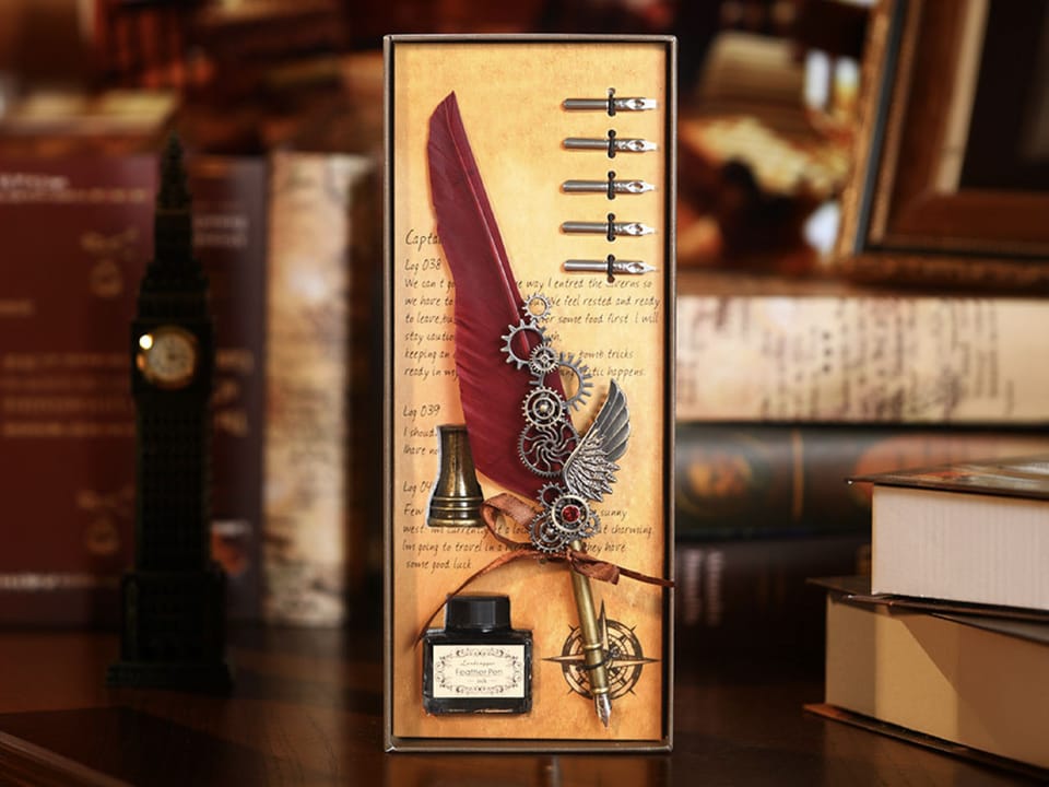 Zestaw piśmienniczy - Pióro bordowe z kałamrzem, atramentem i 5 stalówkami