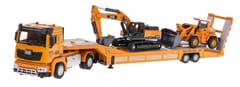 Wymiary - ciężarówka z lawetą ok. 48,5 cm x 6,5 cm x 8,5 cm, - ciężarówka po odpięciu lawety ok.15 cm x 6,5 cm x 8,5 cm, - koparka ok. 16 cm x 5 cm x 8,5 cm, - spychacz ok. 12,5 cm x 5,5 cm x 5,5 cm, - opakowanie ok. 46,5 cm x 15,5 cm x 8,5 cm.