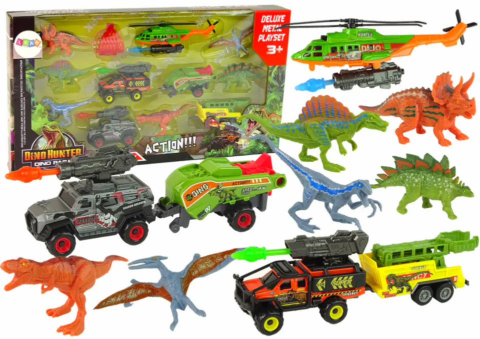 Znajdziemy w nim także sześć dinozaurów, idealnych dla małych miłośników prehistorycznych stworzeń. Każdy z nich reprezentuje inny gatunek i odznacza się realistycznym wyglądem.