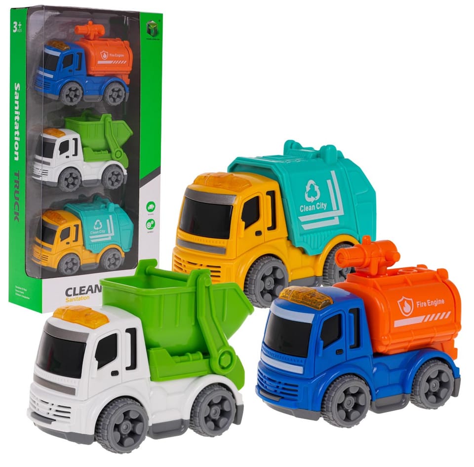 | Zestaw pojazdów służ miejskich dla dzieci od 3-go roku życia. Pojazdy wykonane zostały z najlepszej jakości plastiku w żywych kolorach zachęcających dziecko do zabawy. Wiernie odwzorowują te duże, znane z ulic miast. Pojazdy posiadają ruchome elementy i są niewielkiego gabarytu, co sprawia, że można je zabrać wszędzie ze sobą. W zestawie znajduje się śmieciarka, auto do przewozu gruz oraz auto Straży Pożarnej. Funkcje zestawu:- przeznaczony dla dzieci od 3-go roku życia,- wykonany z najlepszej jakości plastiku,- mały gabaryt pozwala zabrać autko wszędzie ze sobą,- żywa kolorystyka,- ruchome elementy: ruchoma przyczepa na gruz, otwierana klapa śmieciarki i wozu strażackiego, ruchomy o 360 stopni wąż strażacki. | |