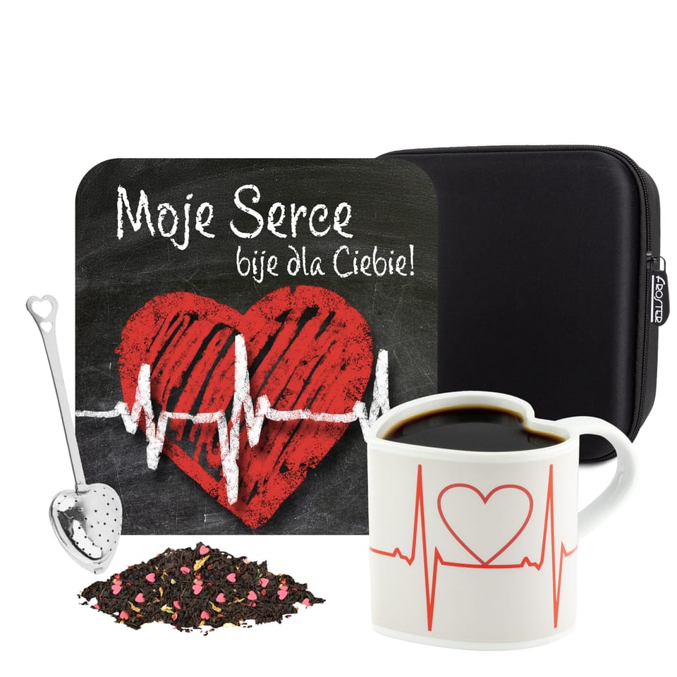 - Skład zestawu: kubek, herbata, zaparzacz do herbaty, etui, wkładka. Gotowy do wręczenia na prezent bez konieczności dodatkowego pakowania. Napis na wkładce: Moje Serce Bije dla Ciebie. Produkt w polskiej wersji językowej. Kubek:Magiczny kubek: dzięki specjalnej farbie nadruk na kubku zmienia wygląd pod wpływem ciepła. Po wystygnięciu lub zalaniu zimną wodą wraca do stanu początkowego.W przeciwieństwie do innych termoczułych kubków, ten kubek zmienia wygląd na całej powierzchni. Nadruk wokół całego produktu. Materiał: porcelana. Wymiary: 8,5 cm (wysokość), 300 ml (pojemność). Nadaje się do kontaktu z żywnością. Produkt jest chroniony zarejestrowanym znakiem towarowym.Produkt bezpieczny