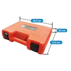 Zestaw jest przeznaczony zarówno do użytku warsztatowego, jak i dla zaawansowanych użytkowników wykonujących obsługę techniczną we własnym zakresie. Całość zapakowana w solidną walizkę z tworzywa sztucznego, ułatwiającą przechowywanie i transport.