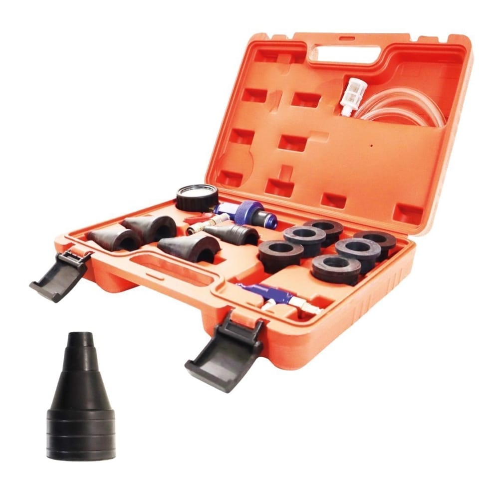 Dzięki zastosowaniu technologii próżniowej proces serwisowy jest czystszy, dokładniejszy i bezpieczniejszy niż w przypadku tradycyjnych metod. Wbudowany manometr próżniowy pozwala na stałą kontrolę parametrów pracy, a dołączone adaptery i pierścienie gumowe zapewniają szeroką kompatybilność z wieloma modelami pojazdów.