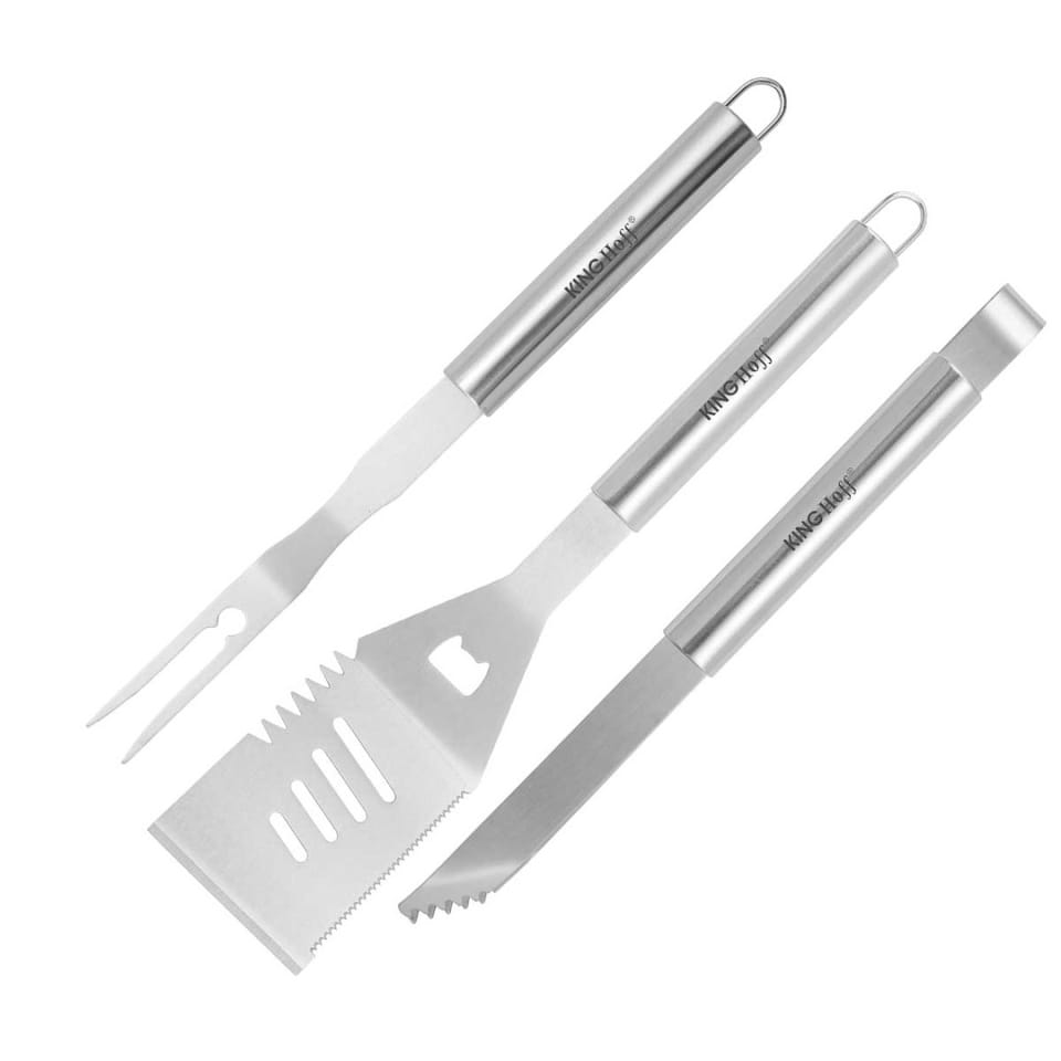 Zestaw narzędzi do grillowania KINGHoff KH-1919 to niezawodne wsparcie dla każdego, kto ceni precyzję, trwałość i wygodę przy przygotowywaniu dań z grilla. Dzięki solidnej stali nierdzewnej i przemyślanej konstrukcji, zestaw sprawdzi się zarówno podczas rodzinnego grillowania, jak i w intensywniejszym użytkowaniu na działce czy w ogrodzie.
