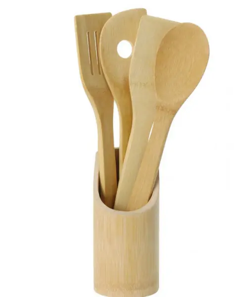 Zestaw przyborów kuchennych 5 elementów bambusowe 30cm Niezastąpiony zestaw przyborów kuchennych w każdej nowoczesnej kuchni.Praktyczny zestaw pięciu akcesoriów kuchennych z naturalnego drewna bambusowego. Solidne i trwałe wykonanie gwarantuje estetyczny wygląd nawet po dłuższym czasie używania. Specyfikacja: Zestaw 5 elementów Doskonale nadają się do garnków i patelni powlekanych Materiał: bambus Kontakt z żywością