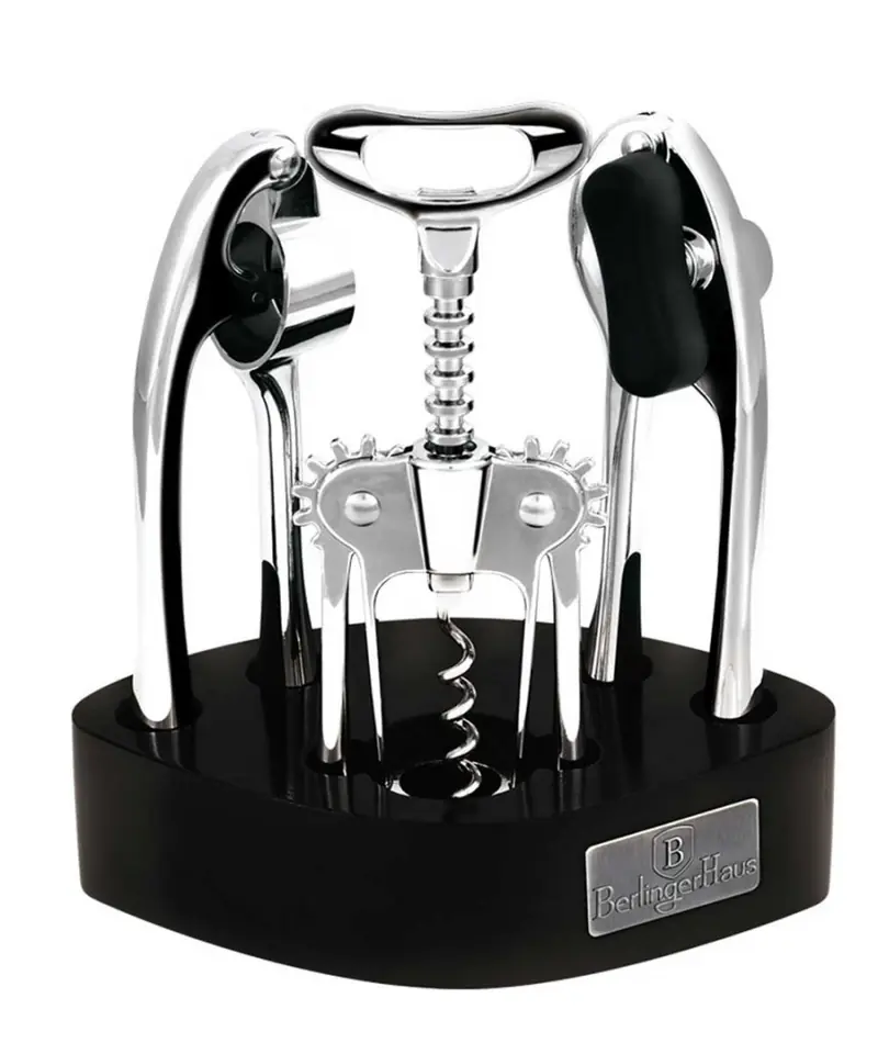 Przybory wykonane ze stali nierdzewnej 18/10 z linii Black Silver Collection. Rączki antypoślizgowe. Bardzo solidny i starannie wykończony. Każdy element jest masywny i ciężki. Całość umieszczona w drewnianym stojaku. Nowoczesny design sprawia, że może być ozdobą każdej kuchni.