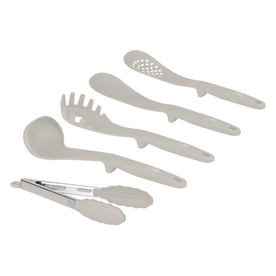 5 elementowy zestaw nylonowych przyborów kuchennych firmy BERLINGER HAUS z linii Sahara Collection. Przybory polecane szczególnie do naczyń z powłokami ceramicznymi i teflonowymi. Materiał z którego są wykonane nie rysuje powierzchni naczyń. Jest odporny na wysoką temperaturę do 210 stopni C. Posiada szczególne właściwości antybakteryjne.
