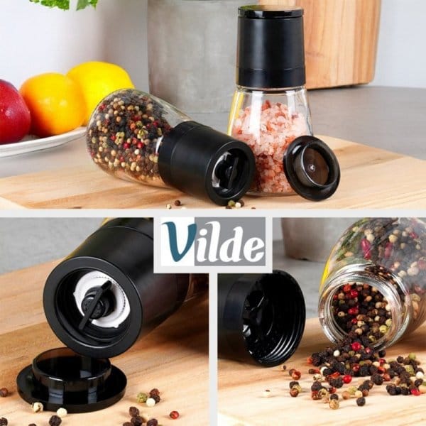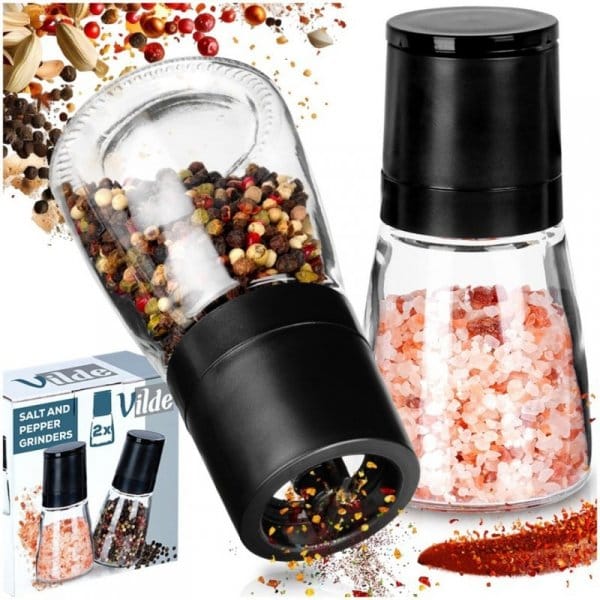 Zestaw składający się z dwóch ręcznych młynków, idealnych do pieprzu oraz soli. Niezbędny zestaw w każdej kuchni. Młynek pozwoli odpowiednio zmielić sól lub pieprz, a także inne przyprawy. Mielenie bezpośrednio przed podaniem pozwala na zachowanie świeżości oraz uwolnienie aromatu przypraw. Młynki, dzięki przezroczystej formie dobrze komponują się z pozostałą zastawą. Świetnie sprawdzą się w lokalach gastronomicznych. Ręczne młynki są zawsze sprawdzonym pomysłem na prezent np. z okazji parapetówki. Zestaw całkowicie bezpieczny dla zdrowia i neutralny dla żywności. Oryginalny produkt marki Vilde. Wyprodukowano zgodnie z europejskimi standardami.