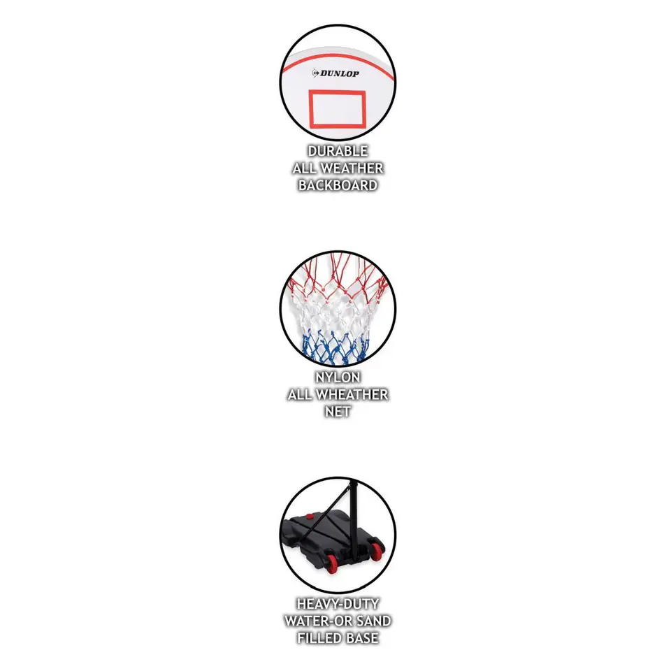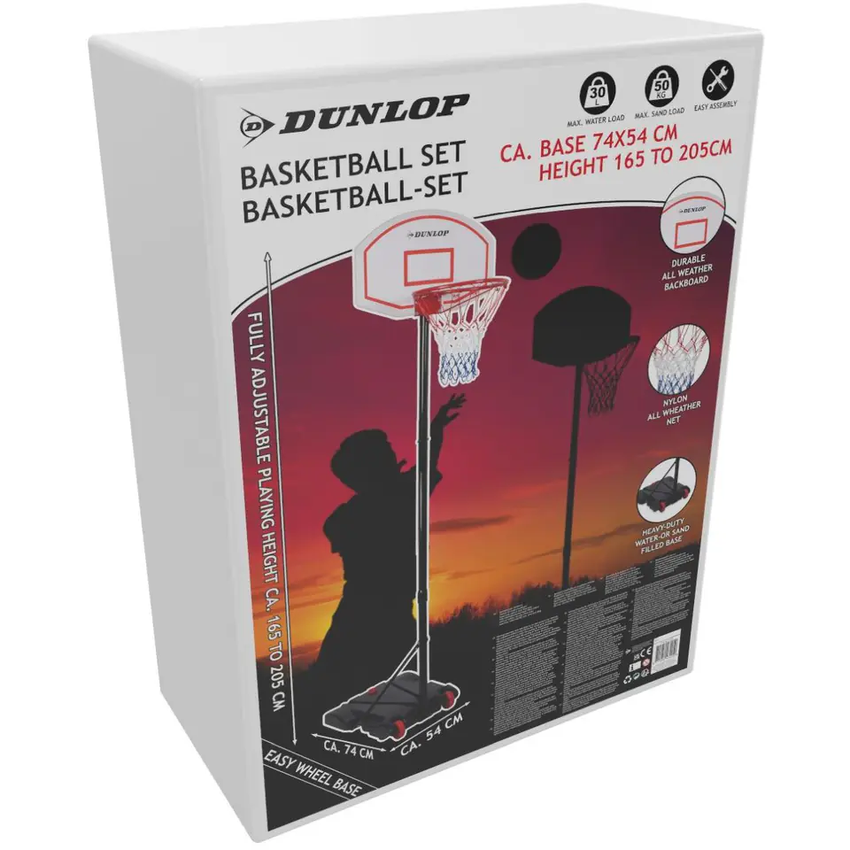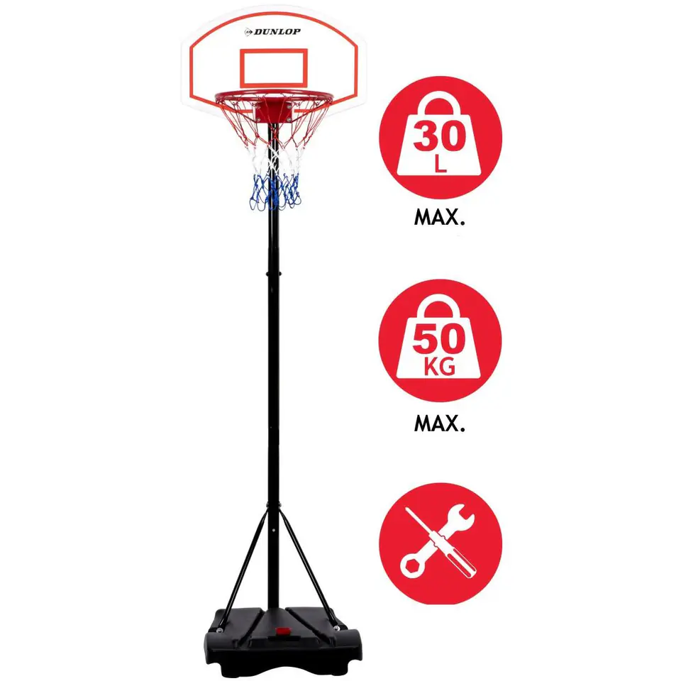 - regulowana długość stojaka pozwoli dopasować wysokość kosza do wzrostu użytkownikapodstawa wypełniona piaskiem lub wodą zapewni stabilnie ustawienie na płaskim podłożukolory zestawu nawiązują do tradycyjnych barw używanych w koszykówcekółka w podstawie ułatwią przestawienie zestawu po skończonej grze w dowolne miejscedo użytku wewnątrz i na zewnątrz pomieszczeńidealny na prezent dla każdego fana koszykówkiszybki i łatwy w montażu