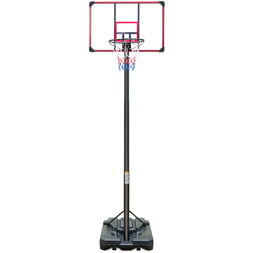 - rozmiar tablicy: 112 x 72 x 2,5 cm (szer. x wys. x gr.)wymiar podstawy: 108 x 74 x 17 cm (dł. x szer. x wys.)wymiar opakowania: 112 x 80 x 24,5 (szer. x gł. x wys.)średnica obręczy: 46 cmśrednica wew. 44 cmmocowanie siatki: 12 haczykówśrednica rury stelaża 8 cmregulacja: od 225 do 305 cmmateriał siatki: nylonmateriał stelażu: stalmateriał tablicy: PCmateriał podstawy: PEmateriał obręczy: stalwbudowane kółka do transportu: tak, 2 szt.wypełnienie podstawy: 80 kg wody lub 90 kg piaskumateriął nie jest odporny na promienie UVwaga netto: 22 kg waga brutto: 23 kg