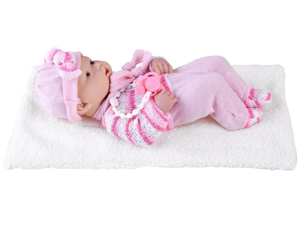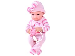 Lalka jest ubrana w różowy kombinezon i czapeczkę z uroczą kokardką. Brak włosków na głowie upodabnia ją do prawdziwego niemowlaka, a dodatkowe ubranka sprawiają, że wygląda ciepło i przytulnie. Czapka i kombinezon wykonane są z miękkiego, przyjemnego w dotyku materiału, który doskonale chroni "bobasa" przed zimnem.