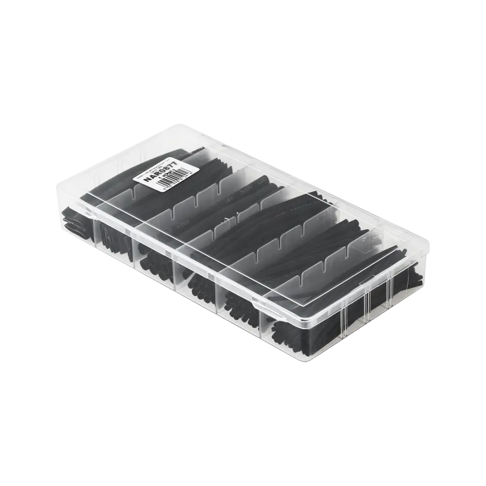 W skład zestawu wchodzą następujące rurki termokurczliwe o długości 100 mm:rura 1,5 mm czarna 30 szt.rura 2,5 mm czarna 30 szt.rura 4 mm czarna 20 szt.rura 6 mm czarna 10 szt.rura 10 mm czarna 6 szt.rura 13 mm czarna 4 szt.