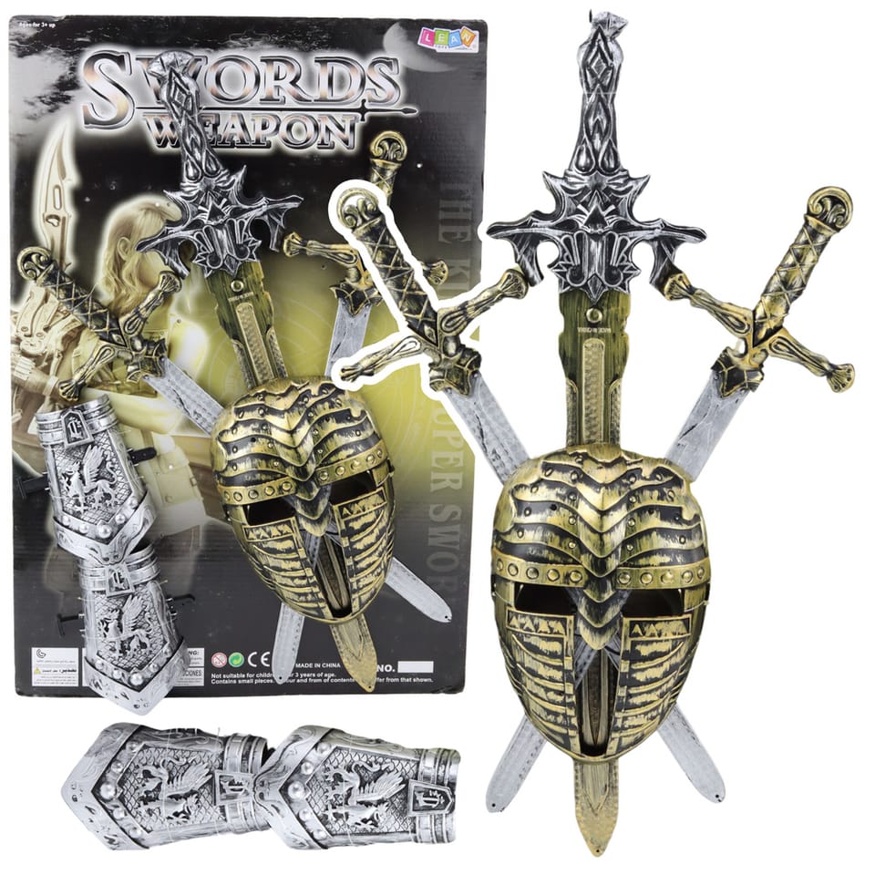 ZESTAW RYCERSKI Z MASKĄ, 3 MIECZAMI I OCHRANIACZAMI