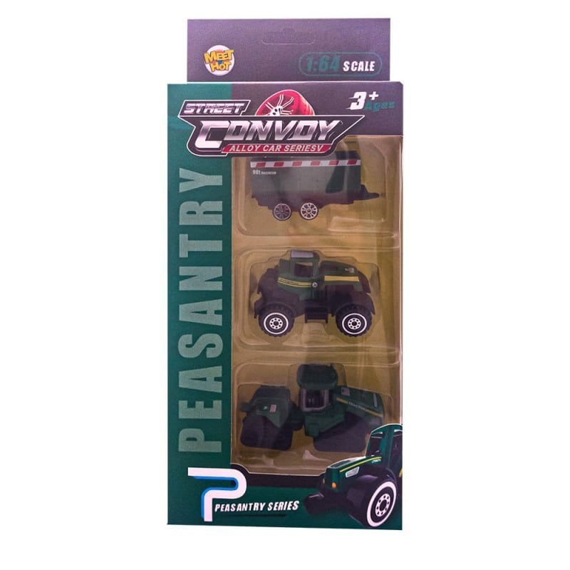 Zestaw pojazdów rolniczych Zapewnia dziecku mnóstwo frajdy. Rozwija wyobraźnię poprzez zabawę. Zestaw zawiera 3 pojazdy rolnicze Dostępne w dwóch modelach. Wymiary: Opakowanie - 13x28x6cm, Wysokość pojazdu: 8cm Wiek: 3+