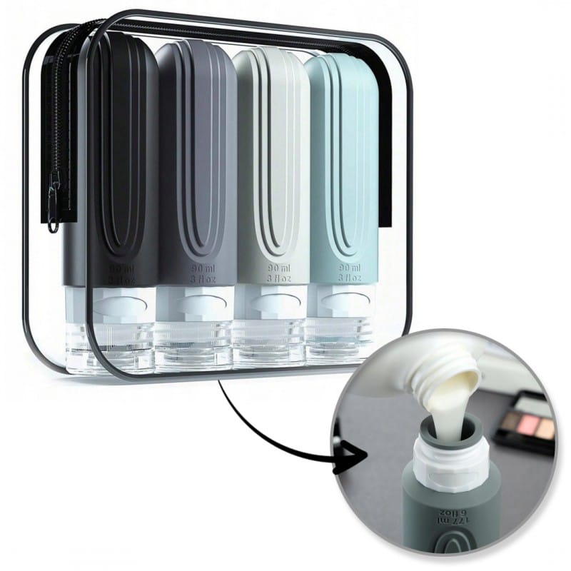 Zestaw silikonowych pojemniczków, buteleczek podróżnych 4w1 90ml KS138