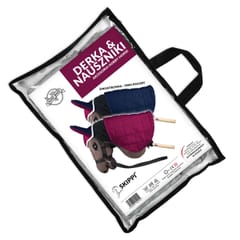 Skład zestawu:koń, derka, nauszniki, 2 x kantar, 2 x wodze, 2 x futerko. Produkt ręcznie robiony. Produkt chroniony Zarejestrowanym Wzorem Wspólnotowym No 015036009