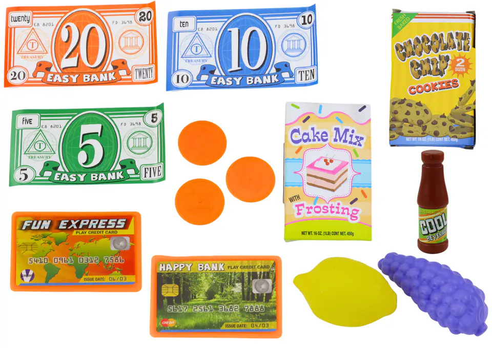 Aby zabawa nabrała jeszcze większego realizmu, do zestawu dołączone są banknoty, monety i karty kredytowe, dzięki czemu dzieci mogą odgrywać role zarówno klientów, jak i sprzedawców. To doskonała okazja do nauki liczenia pieniędzy oraz rozwijania umiejętności interpersonalnych poprzez symulację interakcji w sklepie.