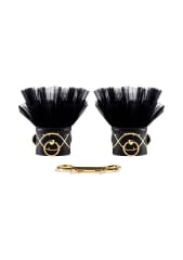 Wszystkie elementy zestawu wykonane są z najwyższej jakości włoskiej skóry, która jest niezwykle miła i miękka w dotyku. Kajdanki i kołnierz smyczy dodatkowo pokryte tiulem dla podkreślenia eleganckiego designu duetu Zalo & UPKO. Róża na trzonku pejcza pokryta została 24-karatowym złotem. Całość dopełnia uroczy ball gag w kształcie róży.