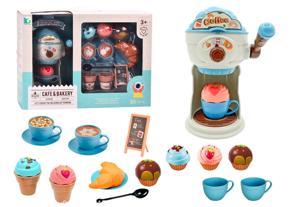 Maszynka do lodów dla dzieci jest idealna do przygotowywania kolorowych i kreatywnych lodów. W przeznaczonym miejscu należy postawić wafelek do lodów, wybrać odpowiedni smak według pokręteł i pociągnąć za wajchę. W zestawie znajdują się także kolorowe talerzyki i filiżanki do kawy, które pozwalają na serwowanie i dekorację smakołyków w stylowy sposób. Miniaturowe donuty oraz babeczki, które nadają się do podawania z kawą.