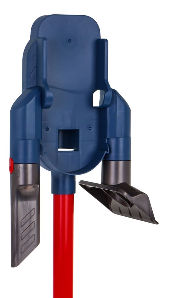- stacja dokująca do odkurzacza, - odkurzacz pionowy, - elektro-szczotka, - ssawka szczelinowa, - szczotka do tapicerki, - styropianowe kuleczki - imitacja odpadów.