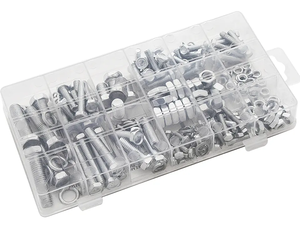 <p>Zestaw śrub i nakrętek 240 szt.</p><p>240-częściowy zestaw zawiera: śruby maszynowe, nakrętki sześciokątne oraz podkładki w rόżnych rozmiarach. Dostarczony w poręcznej kasetce.</p><p><strong>Cechy produktu:</strong><br />- materiał stal ocynkowana<br />- organizer z pokrywką na zatrzask</p><p><strong>Zestaw zawiera:<br />Śruby:</strong> <br />- M4 x 12mm 10 szt.<br />- M4 x 20mm 10 szt.<br />- M5 x 16mm 10 szt.<br />- M5 x 25mm 10 szt.<br />- M6 x 20mm 10 szt.<br />- M6 x 30mm 10 szt.<br />- M8 x 25mm 5 szt.<br />- M8 x 25mm 5 szt.<br />- M10 x 25mm 5 szt.<br />- M10 x 25mm 5 szt.<br /><strong>Nakrętki sześciokątne:</strong> <br />- MP4 20 szt.<br />- M5 20 szt.<br />- M6 20 szt.<br />- M8 10 szt.<br />- M10 10 szt.<br /><strong>Podkładki sprężynujące:</strong> <br />- M4 20 szt<br />- M5 20 szt.<br />- M6 20 szt.<br />- M8 10 szt.<br />- M10 10 szt.</p>