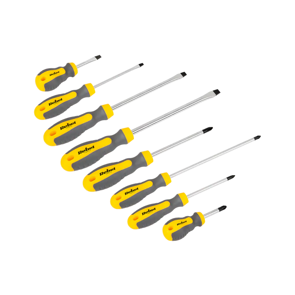 W ofercie Rebel Tools znajdziesz zestaw 8 śrubokrętów, które doskonale sprawdzą się w każdym warsztacie. Uniwersalność tego zestawienia podkreślają dwa rodzaje wkrętaków: płaskie i krzyżowe. Dzięki ergonomicznej rękojeści śrubokręty Rebel Tools idealnie dopasowują się do ręki, a dzięki wykonaniu ze stali chromowo-wanadowej, odpornej na korozję i powstawanie rdzy, posłużą Ci naprawdę długo.