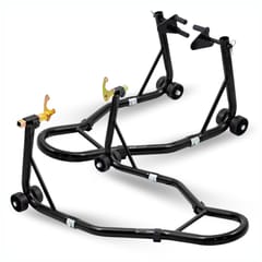 Stojaki przydatne w każdym garażu oraz warsztacie. Dzięki nim w łatwy sposób dokonasz napraw oraz konserwacji. Duża powierzchnia mocująca zapewnia stabilność a gumowe uchwyty chronią motor przed zarysowaniem. Uchwyt mocujący przedni można regulować w zakresie od 210 do 260 mm a tylny od 210 do 340 mm