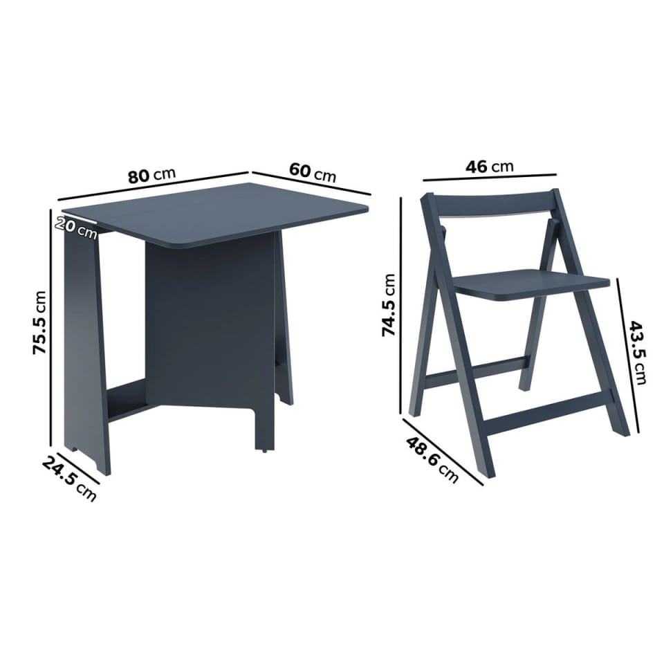 Zestaw stół i 2 krzesła składane i chowane Ivy granatowe