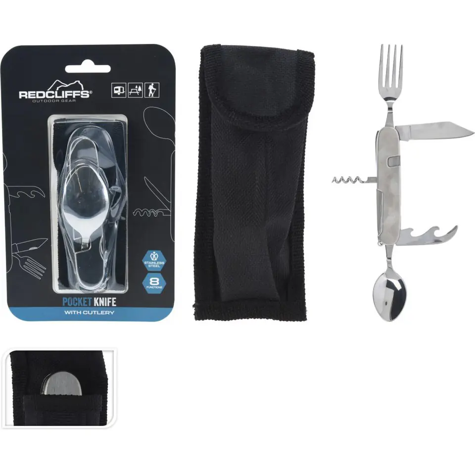 Scyzoryk RedCliffs 8w1 łączy w sobie najważniejsze narzędzia potrzebne podczas biwakowania i podróży: widelec, łyżkę, nóż, korkociąg, otwieracz, piłę i funkcje pomocnicze. To praktyczny niezbędnik do codziennych zadań w terenie. Sprawdzi się zarówno podczas górskich wypraw, jak i weekendowych wyjazdów.
