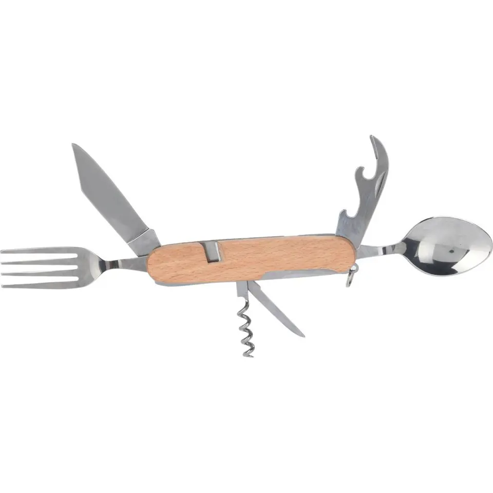- Wymiary: 3,3 x 3,3 x 11 cm (szer. x gr. x dł.)Materiał: stal nierdzewna,drewno, tworzywo sztuczneKolor: srebrny, naturalne drewno, czarny (etui)Waga netto: 0,192 kgWaga brutto: 0,242 kgWymiary opakowania (blister): 12,5 x 3,5 x 20,5 cm (szer. x gr. x wys.)Marka: Redcliffs6w1: nóż, nożyk z ostrym końcem, łyżka, widelec, korkociąg, otwieracz do puszek, etui, kółko na klucze