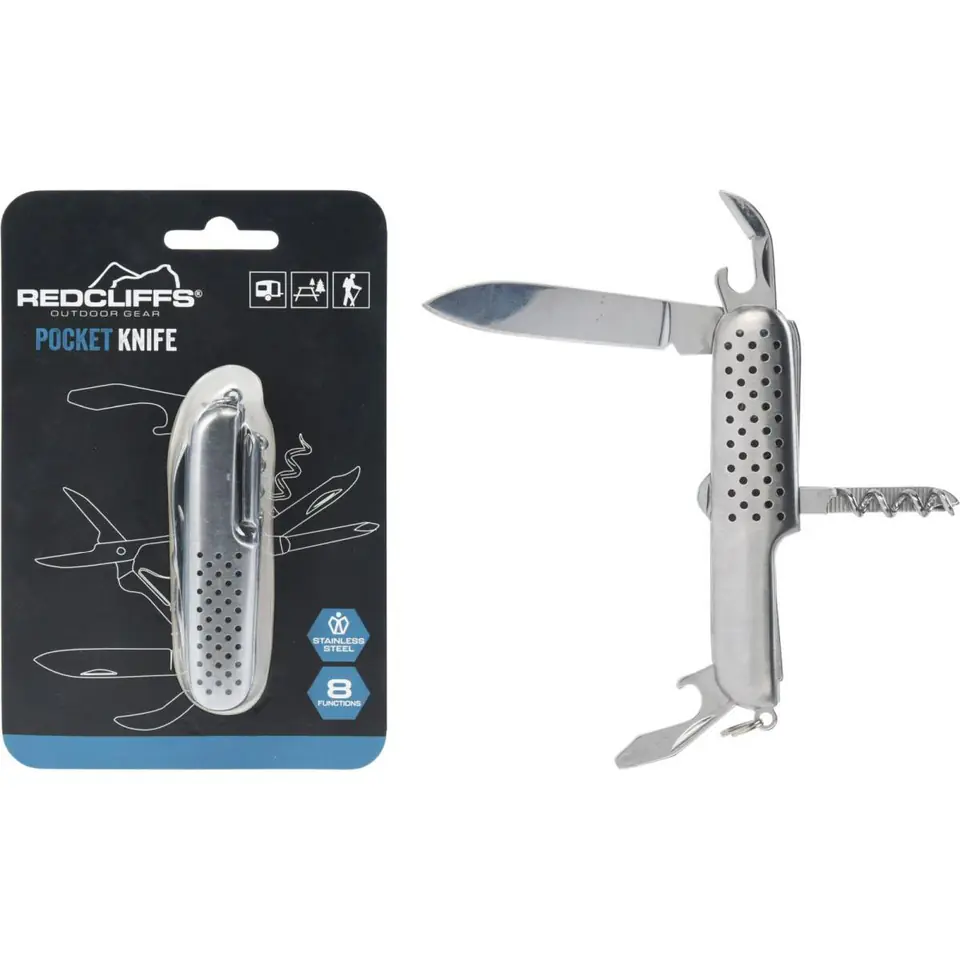 - wykonany ze stali nierdzewnejwyposażony w 8 różnych narzędziprzydatny na wyjazdach, wycieczkach, obozach, kempingach podczas wędkowania i survivalu niektóre elementy posiadają specjalne nacięcie, które ułatwia wysunięciez kółkiem do zawiedzenia np.: przy kluczachkompaktowy i łatwy w obsłudze
