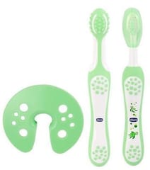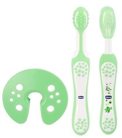 Szczotki do mycia zębów Chicco posiadają bardzo miękkie włosie, małą zaokrągloną główkę idealną dla małych dzieci, plastikowe etui dla higieny, ergonomiczną rączką z miękkim uchwytem ozdobione zabawnymi grafikami, wszystko po to, aby dbać i czyścić dziecięce zęby i dziąsła w najdelikatniejszy sposób.Szczoteczka treningowa przynosi ulgę dziąsłom dziecka w okresie ząbkowania. Przyzwyczaja je także do codziennego dbania o higienę jamy ustnej, ponieważ ma kształt zwykłej szczoteczki do zębów.