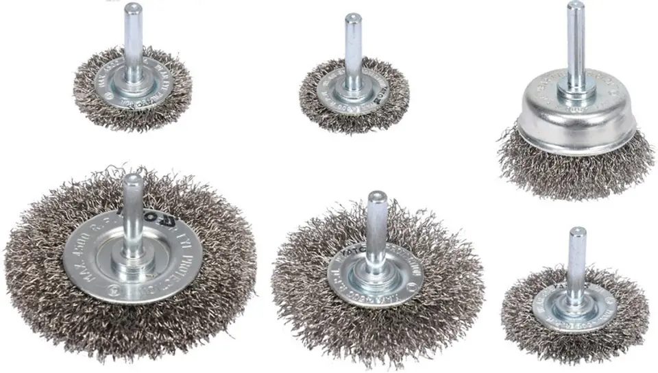 Szczotki rotacyjne przeznaczone do czyszczenia i polerowania powierzchni metalowych, powłok malarskich, a także do usuwania rdzy i czyszczenia narzędzi, przy użyciu szlifierki.