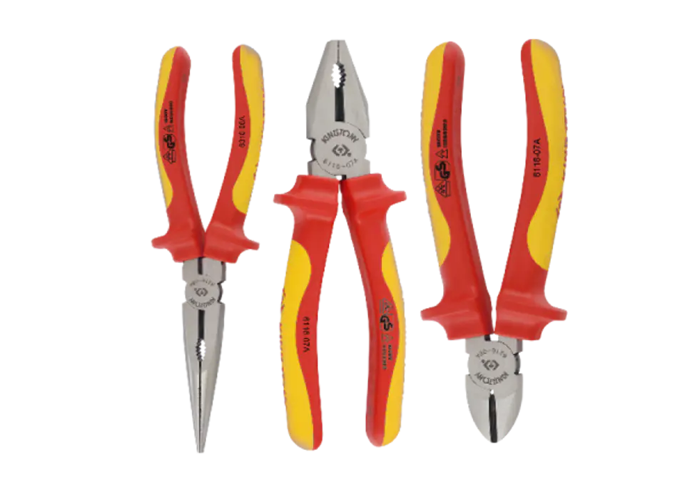 W zestawie szczypce:- 6116-07A szczypce uniwersalne typ europejski, izolowane 180 mm - 6216-06A izolowane szczypce tnące boczne. Pozwalają na pracę do 1000V, całkowita długość 167. Wykonane ze stali chromowo-wanadowej z wygodną w użyciu plastikową rączką. Maksymalna średnica przewodu to 4.0 mm dla przewodów miękkich. - 6318-08A izolowane szczypce wąskie. Izolacja do 1000V, długość szczypiec 210 mm. Maksymalna średnica przecinanego drutu to 4 mm (dla materiałów miękkich) Karta produktu - 40603GP