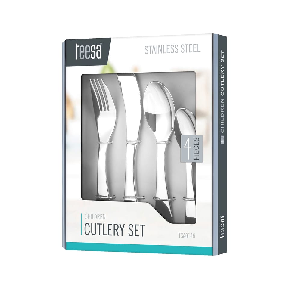 Sztućce stołowe dla dzieci Teesa Chcesz, by Twoje dziecko poczuło się wyjątkowo? Pozwól mu na samodzielny posiłek własnym kompletem sztućców. Sztućce dla dzieci Teesa, to zestaw idealny do rozpoczęcia nauki samodzielnego jedzenia. W jego skład wchodzi idealnie wypolerowany nóż, widelec i łyżka obiadowa oraz łyżeczka do herbaty.